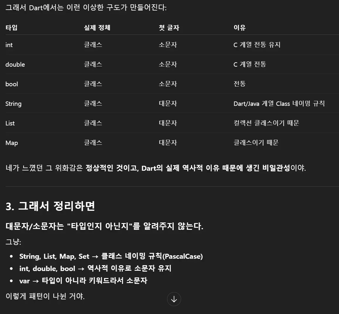 Dart 문법에서 “타입 + 변수명”은 변수를 ‘선언할 때만’ 사용하는 문법이야.